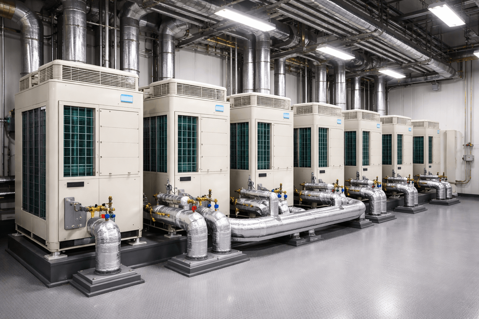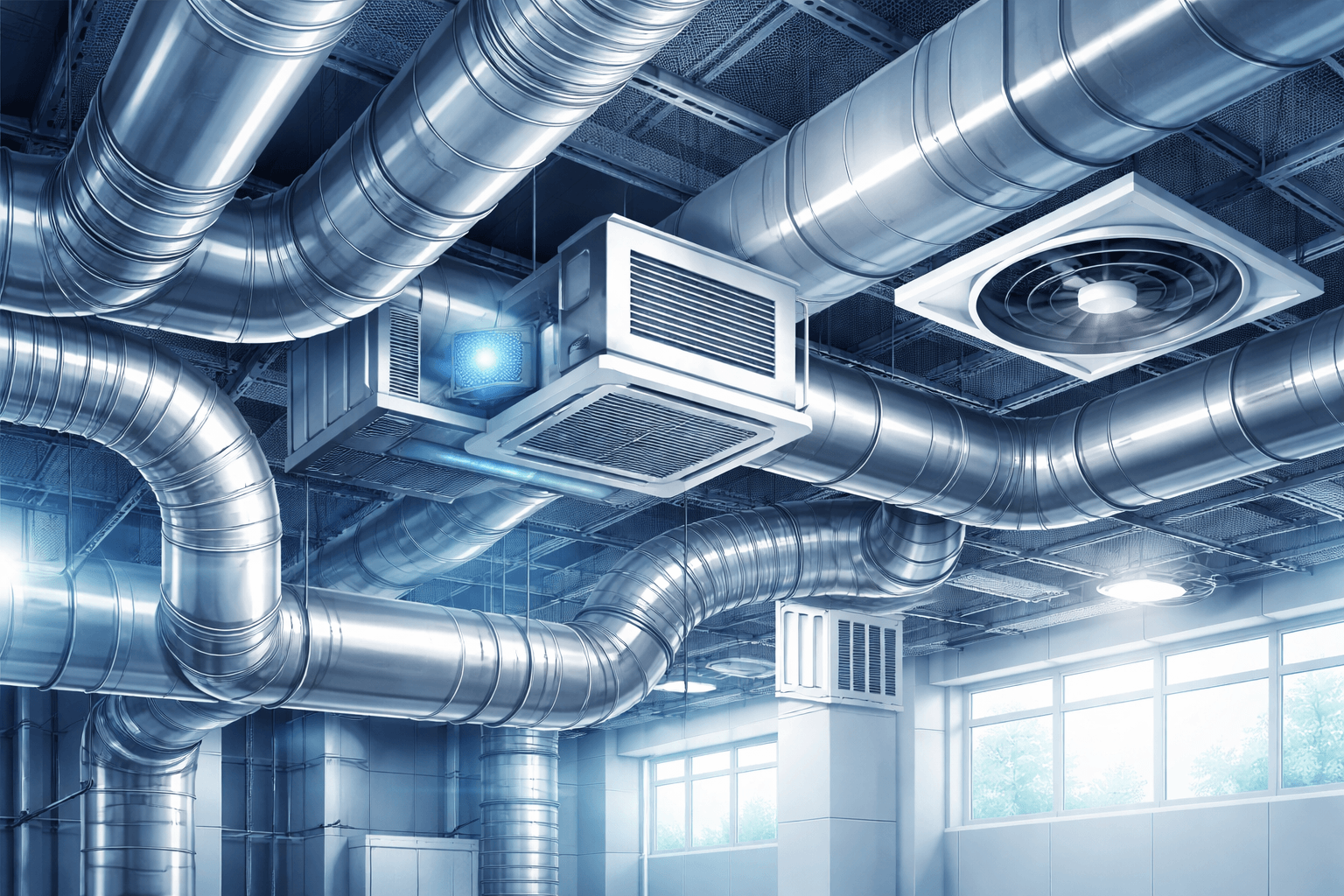 HVAC systems help maintain a comfortable working environment, ensuring stable temperature and air quality.