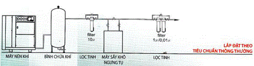 1. Sơ đồ lắp đặt hệ thống khí nén theo tiêu chuẩn thông thường