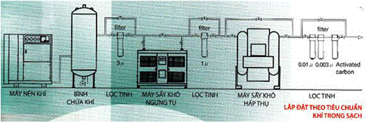 2. Sơ đồ lắp đặt hệ thống khí nén theo tiêu chuẩn khí sạch