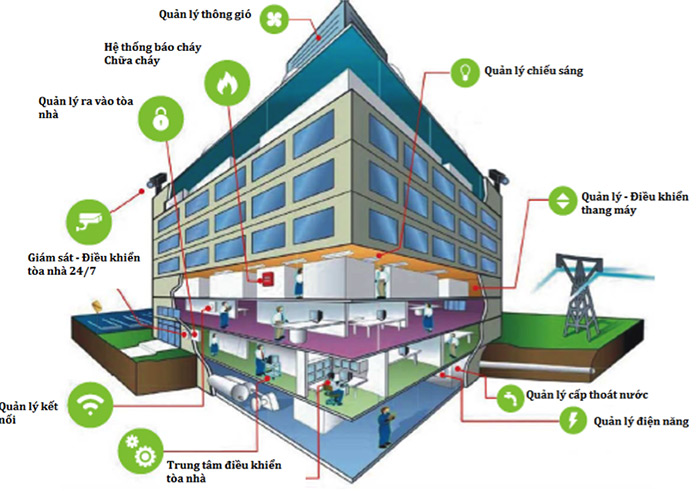 - Liên kết các hệ thống điện nước, an ninh,… thông qua một giao diện mở có khả năng điều khiển bằng giao thức mạng. Đồng thời đảm bảo các hệ thống này luôn hoạt động và vận hành một cách tối ưu, hiệu quả. Qua đó, đáp ứng tốt nhất nhu cầu sử dụng, giúp những người sinh sống hoặc làm việc trong tòa nhà luôn cảm thấy thoải mái và tiện nghi.
