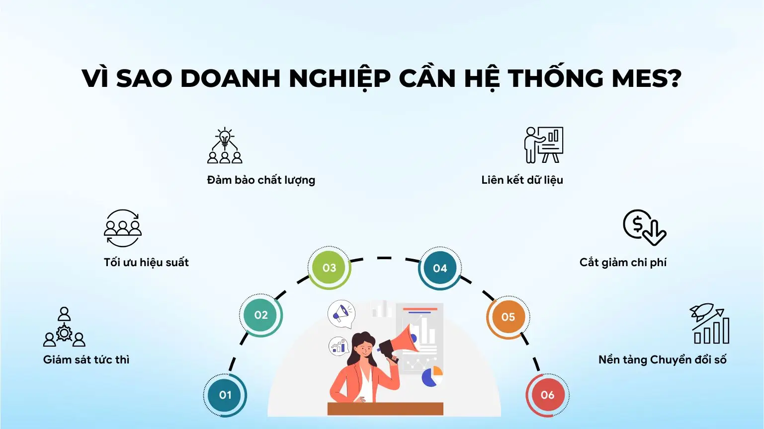 Hệ thống MES không chỉ là một phần mềm quản lý sản xuất, mà còn là công cụ chiến lược giúp doanh nghiệp nâng cao hiệu quả, giảm chi phí và tăng khả năng cạnh tranh trong kỷ nguyên số. Khi được triển khai đúng cách, MES mang lại những lợi ích thiết thực như: