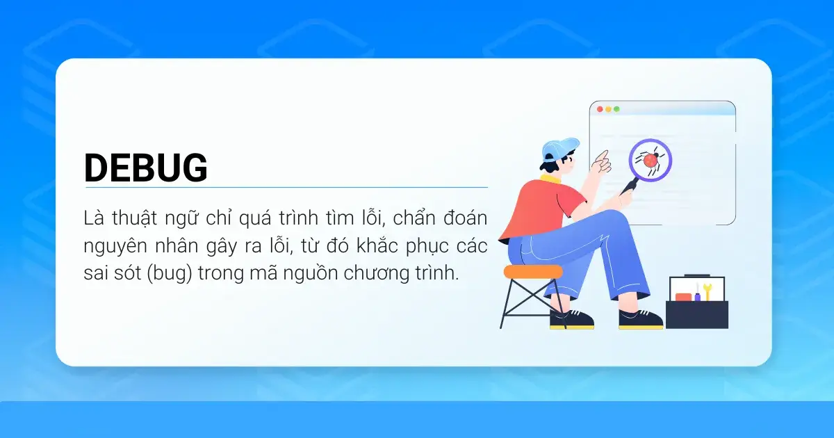Debug là thuật ngữ chỉ quá trình tìm lỗi, chẩn đoán nguyên nhân gây ra lỗi, từ đó khắc phục các sai sót (bug) trong mã nguồn chương trình. Đối với các coder (lập trình viên), phải tìm kiếm và xử lý lỗi trong hàng ngàn dòng code thực sự là thách thức không hề nhỏ, đặc biệt là những bạn chưa có kinh nghiệm.