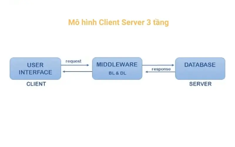 - Bao gồm ba tầng: Client, tầng trung gian (middleware), Server.
