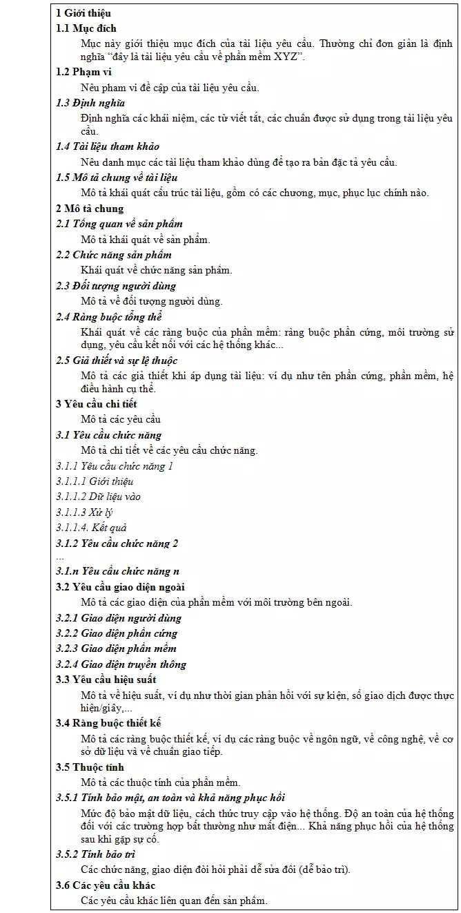 3.5 – Định dạng đặc tả yêu cầu: