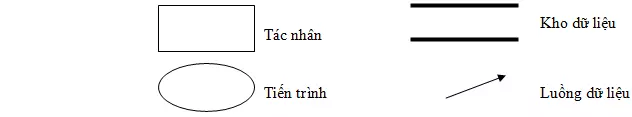 Các ký hiệu được dùng trong biểu đồ luồng dữ liệu như sau: